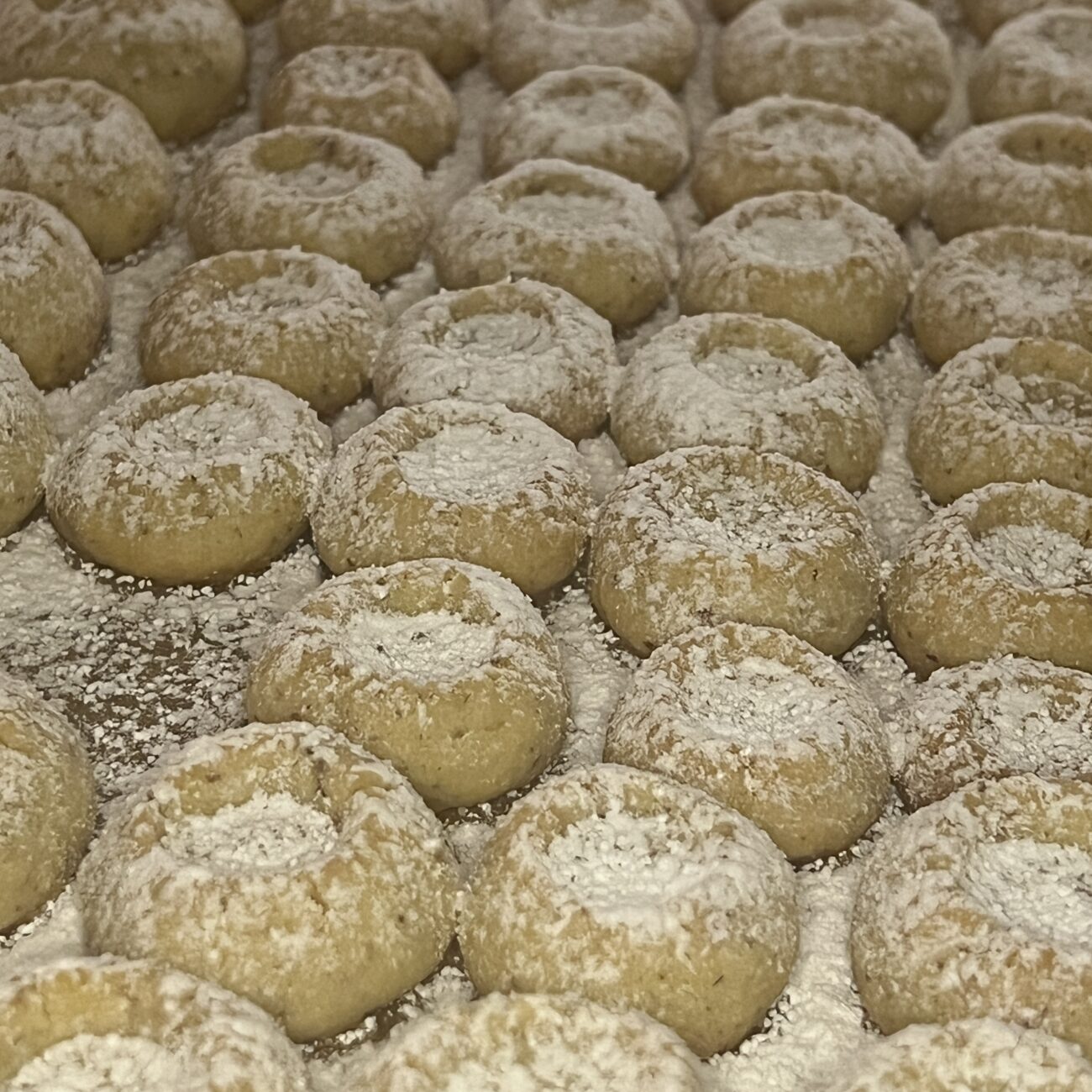 Teile dir den Teig in 2 Stücke auf und forme jeweils eine lange Rolle, von der du dir kleine Teiglinge abstichst. Rolle sie zu einer Kugel und setze sie auf ein mit Backpapier belegtes Backblech. Mit Hilfe eines Kochlöffels drückst du anschließend eine Kuhle in die Mitte der kleinen Kugel, hier kommt später die Marmelade rein. (Tipp: am besten lassen sich die Kuhlen eindrücken, wenn der Teig noch kühl ist, daher ist schnell sein wichtig 😊)