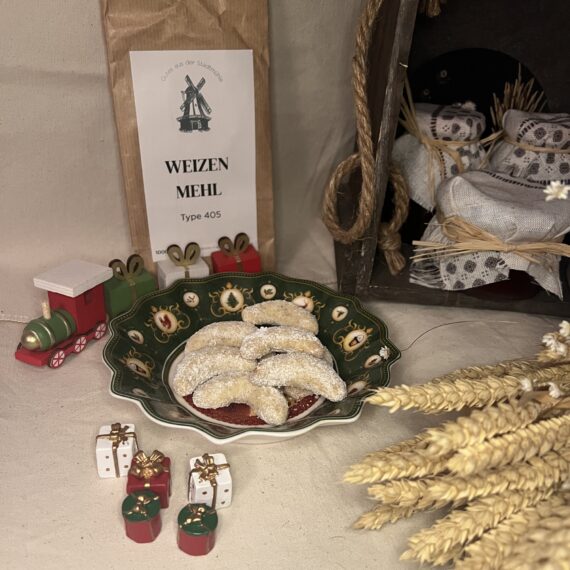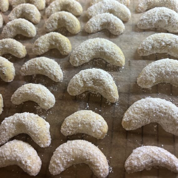 Mische den Puderzucker mit dem Vanillezucker und wende die warmen Kipferl darin. Fertig!